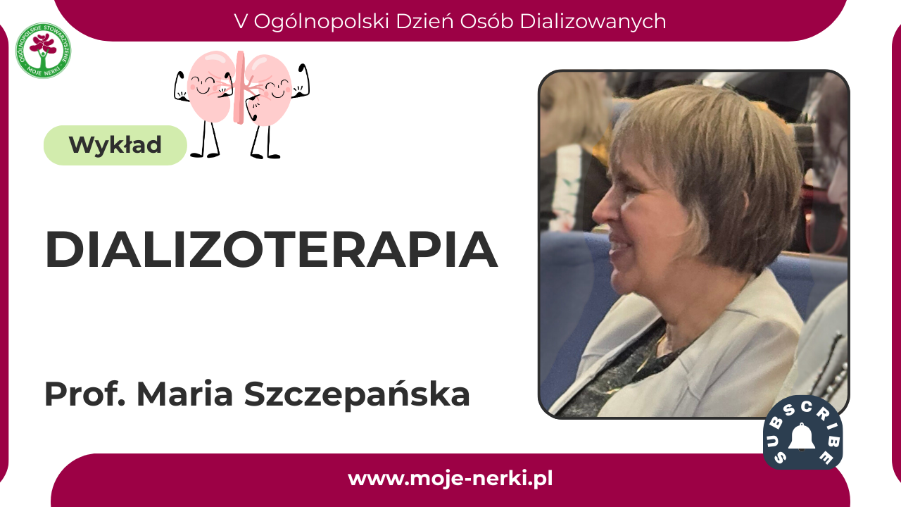 Na kanale YouTube Ogólnopolskiego Stowarzyszenia Moje Nerki udostępniliśmy wykład Maria Szczepańska, prof. dr hab. n. med., Kierownik Katedry i Kliniki Pediatrii Śląski Uniwersytet Medyczny w Katowicach, poświęcony dializoterapii dziecięcej oraz współpracy interdyscyplinarnej w opiece nad dzieckiem dializowanym.